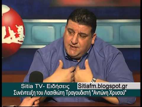 Συνέντευξη του Λασθιώτη Τραγουδιστή Αντώνη Χρυσού στο ραδιοφωνικό σταθμό Sitia FM 95,5 MHz και τον Τηλεοπτικό σταθμό Sitia TV από τον δημοσιογράφο Μανόλη Τσαγκαράκη. Δευτέρα 9 -3-2015.