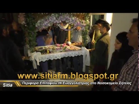 Tο βράδυ της Μ. Παρασκευής 29/4/2016 έγινε η καθιερωμένη Περιφορά του Επιταφίου του ΙΝ Ευαγγελίστριας στο Νοσοκομείο Σητείας. Οι εργαζόμενοι του Νοσοκομείου προσκύνησαν τον Επιτάφιο “για να τους πιάσει η χάρη “ όπως λένε, δημιουργώντας μία ατμόσφαιρα κατανυκτική.