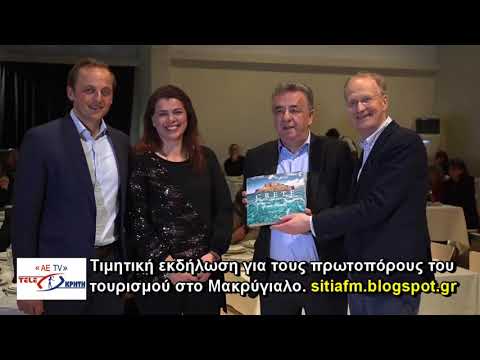 Τιμητική εκδήλωση πραγματοποιήθηκε στη Σητεία για τους πρωτοπόρους του τουρισμού στο Μακρύγιαλο από τον σύλλογο ξενοδόχων Σητείας, του εργατικού κέντρου Λασιθίου, το Δήμο Σητείας, και την περιφέρεια Κρήτης.