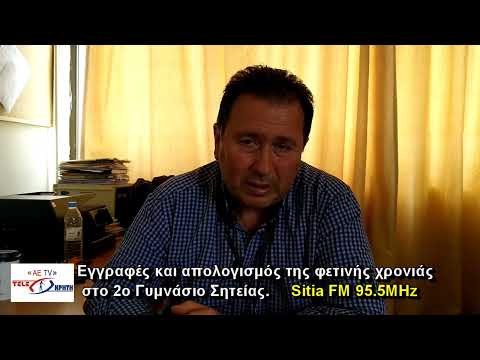 Απολογισμό της φετινής σχολικής χρονιάς στο 2o Γυμνάσιο Σητείας έκανε ο διευθυντής του σχολείου Γιώργος Ρείζης. Ο κος Ρείζης μίλησε στο σταθμό μας και για τις εγγραφές που φέτος γίνονται ηλεκτρονικά.